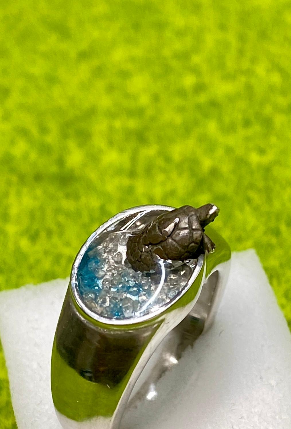 池から出ようとするイシガメさんのリング  #16